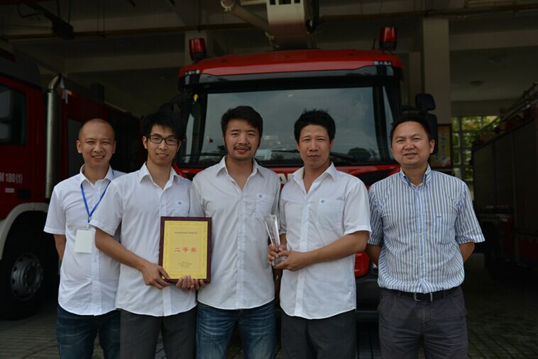 整個比賽分兩場次進行,其中干粉滅火器滅火操每組三支隊伍同時進行,兩盤水帶連接出水操每組逐一進行。在干粉滅火器滅火操項目中,天信代表隊隊員依照號碼順序出場,拔栓子,提瓶奔跑,向火根處噴射干粉,全套流程一氣呵成,完成的非常精彩,這也為下一場的比賽奠定了良好的基礎;在兩盤水帶連接出水操項目中,三人按照各自的分工,莊升運連接并打開水閥,張維景迅速鋪設水帶,陳常琳連跑邊接水帶,最后對著標靶完成射擊,最終以團隊39秒的成績出色完成了這一項目。在整個比賽過程中,三人協(xié)作配合緊密,辛勤的汗水換來了全國第一的好成績。