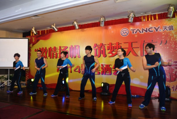 到了晚上,嚴(yán)肅莊重的會議變?yōu)闊艄廨x煌、激情四溢的熱鬧場景。公司領(lǐng)導(dǎo)和嘉賓、還有200多名營銷、后勤服務(wù)人員歡聚一堂,共享豐收的喜悅。陳董和范總先后上臺致辭,在他們的字里行間,無不流露出對大家的感恩之心,他們還表示公司將在新的一年里一如既往的關(guān)心和支持銷售工作,這讓大家為之榮耀,為之振奮!
